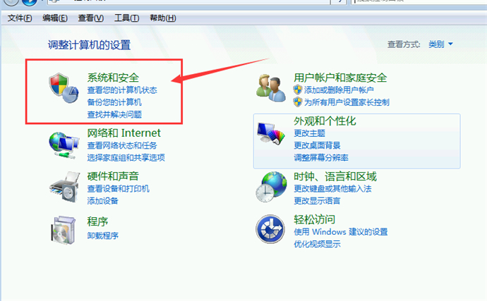 2、打開“系統(tǒng)和安全選項”;